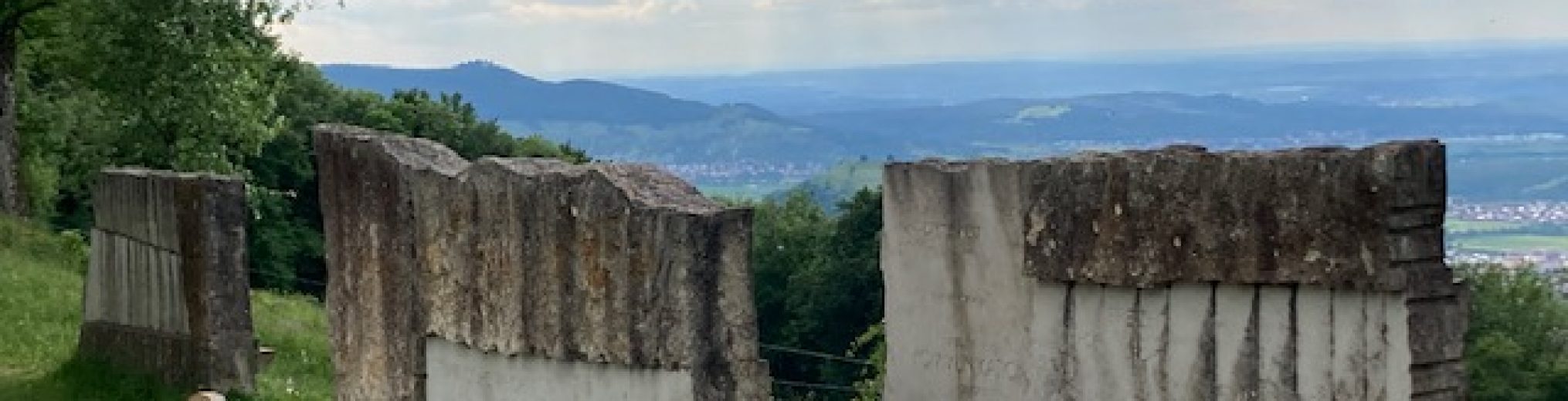 Die Wohlfühlwanderung führt auf die Alb zu den Jahrhundertsteinen beim Gruibinger Wiesle. Initiator und Stifter Helmut Moll hatte die Idee, aus Verantwortung vor der Geschichte dem 20. Jahrhundert eine steinerne Erinnerung zu geben. Das vom Künstler Uli Gsell gestaltete Kunstwerk vermittelt mit 100 Worten Einblick und Rückblick in eine ereignisreiche Zeit.